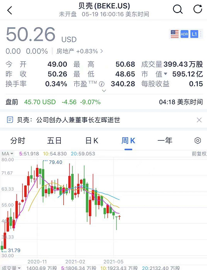 最新数据显示,贝壳的市值有3800多亿人民币,盘前跌超9%。