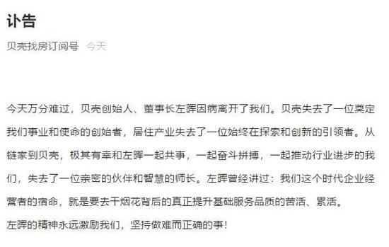 但是在今天,问题显得无足轻重了。2021年5月20日,链家创始人、贝壳找房创始人董事长、身价2000亿元的左晖因病去世,享年50岁。那个能解答,能做回应的人走后不久,又有新提问,这家中介未来去向何方?