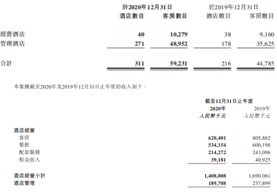 实际上再仔细看开元酒店的业务,主要分为两块:持有物业的和轻资产的。在开元酒店2020年财报里,开元酒店经营酒店40家,管理酒店271家;酒店经营收入约为14亿元,酒店管理收入约为1.9亿元。