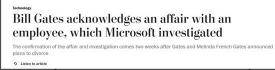 5月4号官宣离婚时,网友们还料想不到,隔了短短不到两周,盖茨又被爆料出轨女下属的新闻。