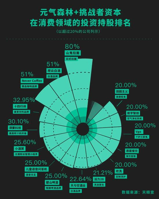 既然自己还没有成果,就通过挑战者的资本杠杆加速布局。咖啡和白酒这两个重点类目对应的投资标的NeverCoffee和观云白酒,还呈现出了挑战者资本入股、元气森林跟进的路径,目前均已实现了“唐系”的51%控股。