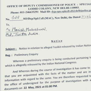 主要反对党印度国大党表示,Sambit Patra发布的文件是伪造的。在一封致Twitter的信中,该党要求Twitter删除这些推文,并永久冻结那些分享假工具包的个人账户。信中说,印度人民党高层人员利用Twitter传播“虚假信息”,这可能 “在当前的大环境下,造成国家的社会动荡”。