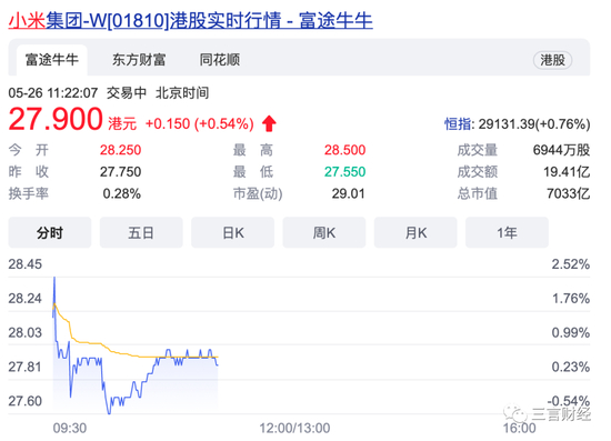 受此影响,截至发稿,小米今日股价进一步上涨,市值也反弹到7000亿港元以上。