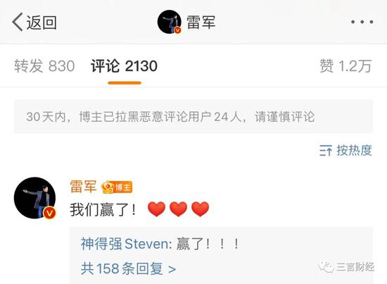随后,小米创始人、董事长兼CEO雷军也在社交媒体宣布了这一消息,并表示“我们赢了”。