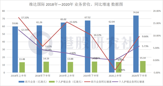 这点从维达2018到2020年 的业务营收中可以略显端倪。这几年的纸巾业务增速发生了滑铁卢般的下跌,只有个人护理保持了向上的稳定增长。