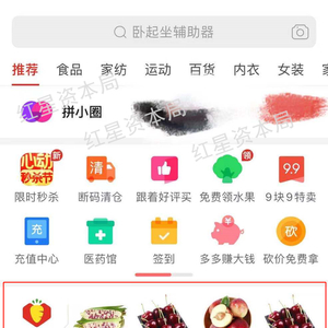 首先,一打开拼多多的首页,gaoguan就可以收到多多买菜的弹窗提醒,每一个用户点开APP都会被触达一次;其次打开拼多多主页,多多买菜入口就放在主页最中间,占据绝对C位的多多买菜,可谓非常醒目。