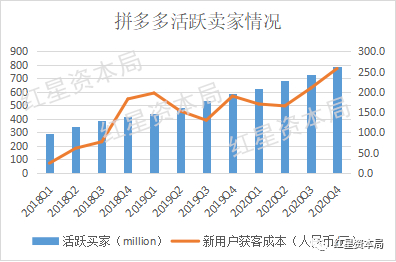 新业务会带来新用户,但在红星资本局看来,这已经不是拼多多目前的主要矛盾所在。在微信的巨大流量带动下,早在2020年底,拼多多的活跃买家数量就达到7.88亿,超过同期阿里巴巴的7.79亿,拼多多也首次成为国内用户规模最大的电商平台。