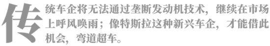但当特斯拉横空出世,吸引资金持续投入电动车市场;当全球各地政府开始推动禁售燃油车的计划,传统车企也不得不改为发展电动车技术。尽管电动车仍然需要各种不同的先进技术,但当中没有任何一项技术,能像发动机一样占有绝对的统治地位。传统车企将无法通过垄断发动机技术,继续在市场上呼风唤雨;而像特斯拉这种新兴车企,才能借此机会,弯道超车。