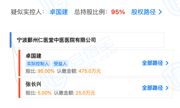 据国家企业信息公示系统,涉事公司宁波鄞州仁医堂中医医院有限公司成立于2018年5月,注册资本500万人民币,法定代表人为卢峰。