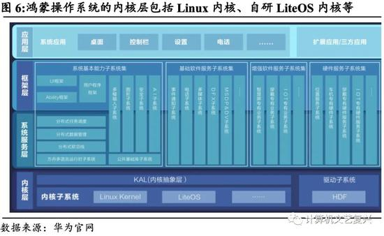 其一,鸿蒙“微内核”的模块化设计思路更顺应万物互联时代的需求。我们来看一下华为HDC大会上公布的鸿蒙操作系统架构图的内核层级,当前阶段鸿蒙的内核子系统是Linux宏内核、LiteOS内核、鸿蒙微内核等多个内核混合的设计,其中Linux宏内核同样是Android OS的内核,这也是鸿蒙系统可以快速兼容安卓应用的主要原因(华为消费者BG软件部总裁、鸿蒙总负责人王成录在接受采访时也承认鸿蒙目前使用了部分AOSP开源代码,成为外界质疑鸿蒙“套壳”安卓的主要原因,但实际上AOSP社区也有不少代码是非谷歌贡献的,需要理性看待,在今年10月预计开源的鸿蒙3.0系统将几乎看不到谷歌贡献的AOSP代码);LiteOS内核是华为专门针对IoT设备研发的轻量级、低功耗操作系统内核;鸿蒙微内核则是鸿蒙系统未来将主要采用的自研核心;鸿蒙操作系统可以针对其运行设备的不同,选用最适合的内核,为上层提供基础操作系统能力。