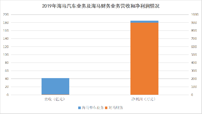 根据2019年其财报数据显示,海马汽车业务全年营业收入为41.7亿元,净利润为185万元;相比之下,海马财务全年营收虽然不及汽车业务为1.57亿元,但净利润却高达898.3万元,几乎赶上了5个汽车业务。