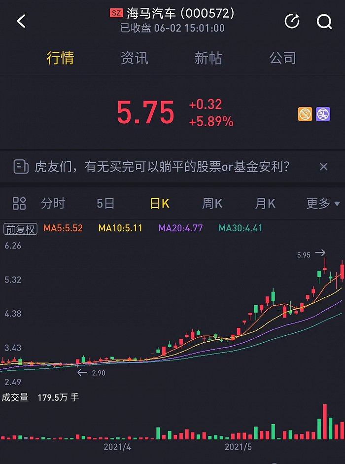 海马汽车股价,截图自老虎证券