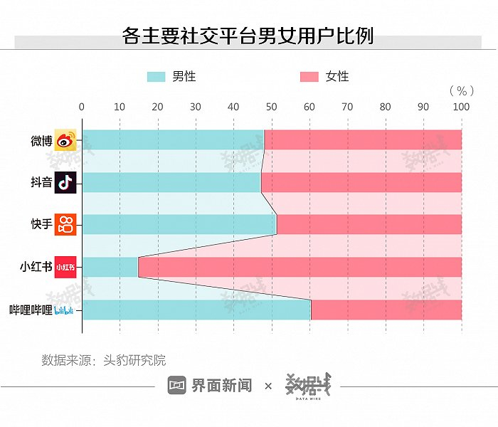 目前国内的主要社交平台中,仅有小红书的用户群体以女性为主,占比超8成。