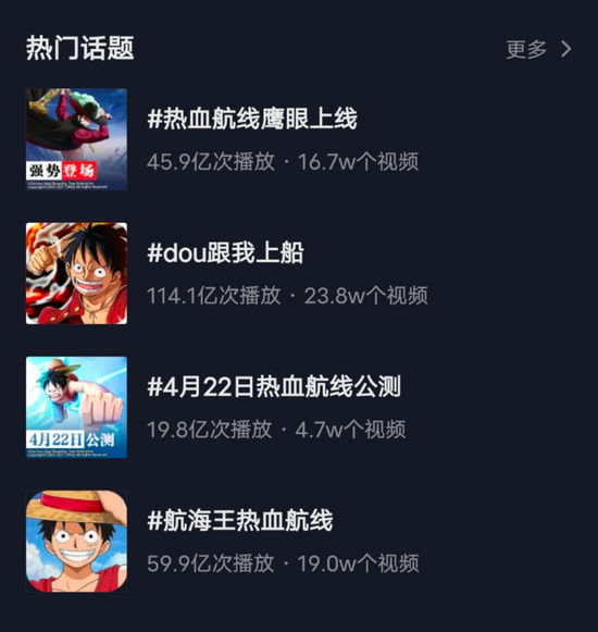 此次《航海王热血航线》的横空出世,最主要的因素还是字节的空前重视,但与此前的推广不同,这一次,抖音成为了推广和分发的主要平台,并取得了不错的效果。