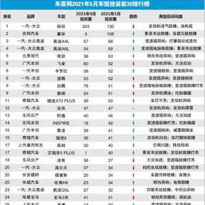 就在最近,车质网所发布的 2021 年 5 月车型投诉排行榜显示,一汽 - 大众探岳近期突然爆出不少质量投诉,将它送上了榜首位置,而车主投诉的问题基本都集中在颗粒捕捉器堵塞、油耗暴增等问题上。尽管一汽 - 大众探岳车主现在还没爬上车顶拉横幅维权,但依然能成为汽车行业近期的焦点。