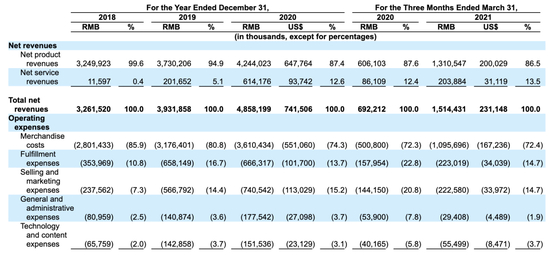 然而,其商品成本占了很大一部分,包括通过AHS商店回收二手电子产品的产品成本、以及产品销售的入库运费。