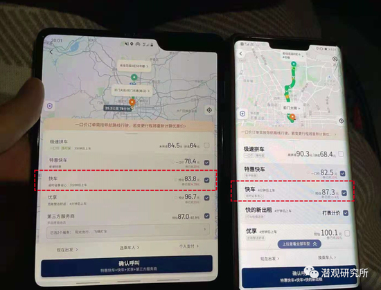 华为mate 30 pro(购买花费大概6000元):快车87.3元;优享100.1元