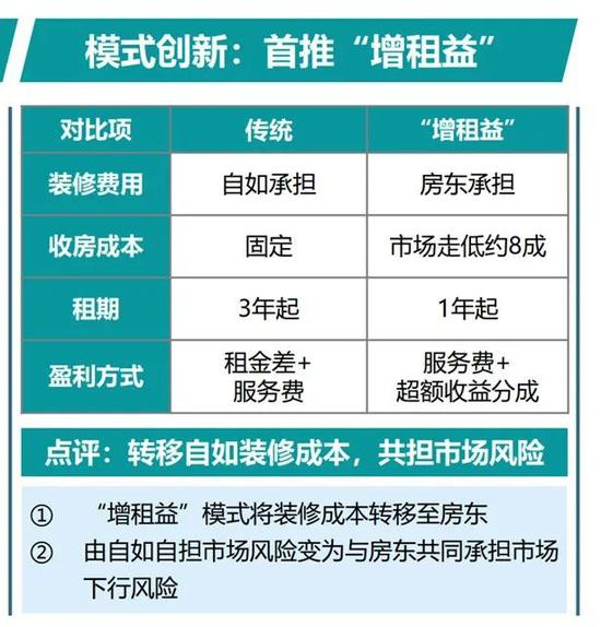 简单来说,就是将装修成本转嫁至房东,同时过去由自如自担的市场风险,变为与房东共同承担市场下行风险。