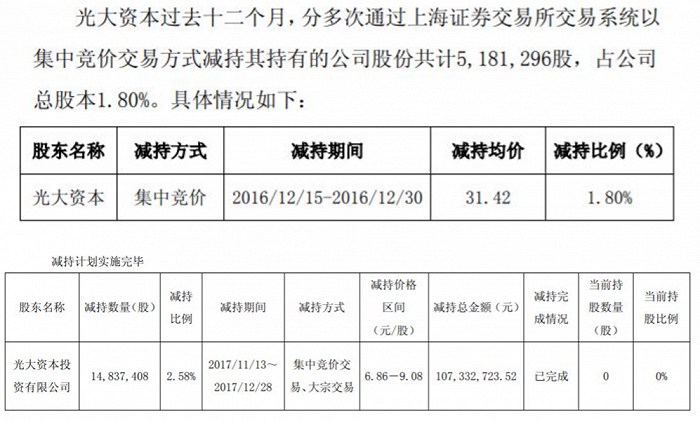 读者传媒的股东也在竞相减持。2017年11月,第二大股东光大资本投资有限公司宣布6个月内通过大宗交易及二级市场相结合的方式减持所持全部股份,套现1.07亿元。加上2016年底通过集中竞价方式,按照31.42元/股均价减持的518万股(约1.62亿元),合计套现超2.6亿元。