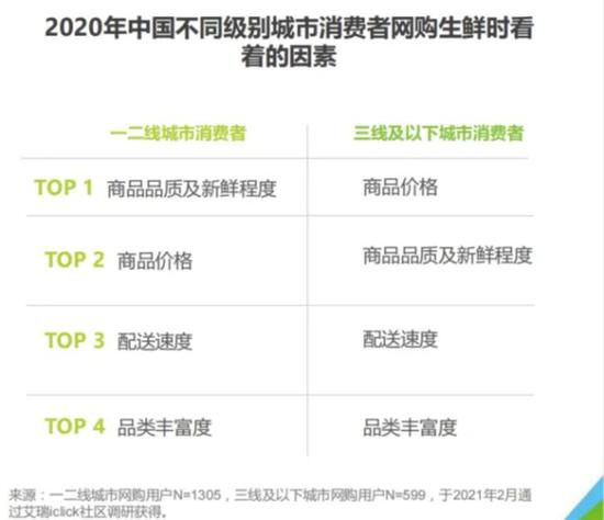 在这场似乎无止尽的在线生鲜战争中,双方的基本盘都非常明显。前置仓电商面向一线城市白领阶层人群,对价格不敏感、对时效要求高;社区团购面向下沉市场与家庭主妇,有着严谨的家庭生鲜管理能力或对价格敏感。