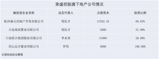 而乐居财经查阅获悉,除了两大平台之外,还有海滨置业、岱山辰宇置业等地产公司,散落在外,互不隶属。前者由浙江荣盛直接持股,后者由浙江荣盛间接全资持有。