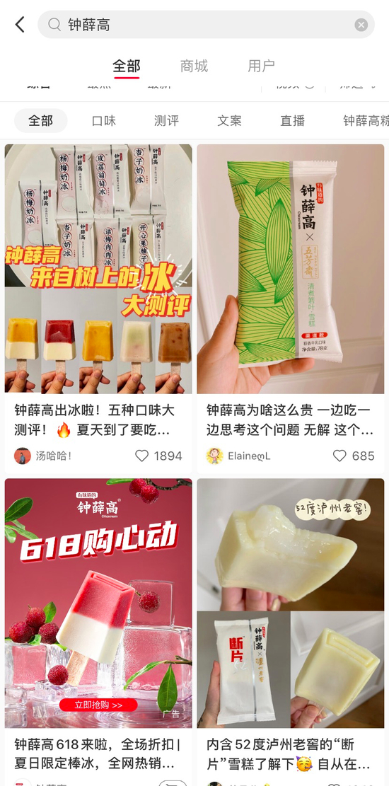 在小红书搜索“钟薛高”有超2w篇笔记