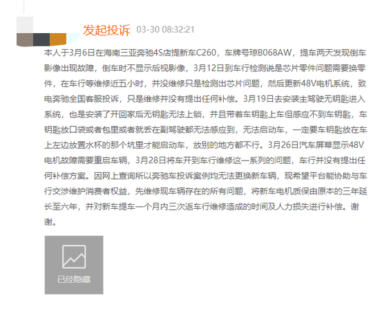 提车三天就“中招”!奔驰疑现电机质量通病,车主急盼召回