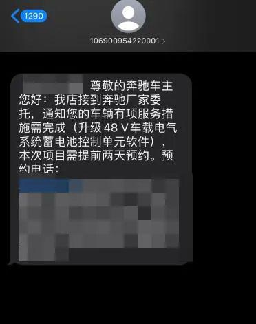 今年3月,奔驰方面向部分车主发送了一条短信,指出可以升级48V车载电力系统蓄电池控制单元软件,有车主质疑这是奔驰采取的“内部召回”措施。