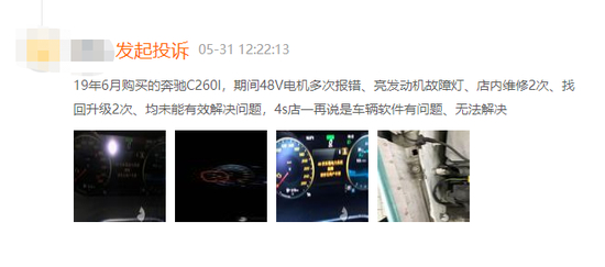 在车质网、汽车之家、黑猫投诉等平台可以发现,多位网友反映奔驰C260车型的48V车载电力系统多次故障。