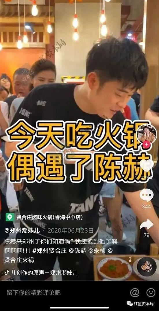 除了陈赫经常发布和明星一起吃贤合庄的动态外,抖音网红的打卡视频也层出不穷。曾有网友笑称,抖音上的各路网红都在拍贤合庄火锅店的视频,不仅有美食类、搞笑类,甚至还有汽车和手表类网红,实现了全渠道覆盖。