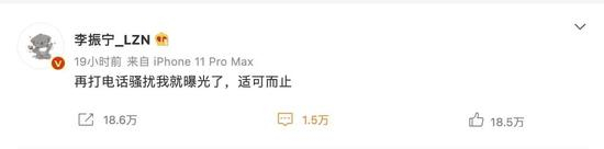 除了张雨绮外,6月14日,李振宁在微博发文称自己被电话骚扰,让对方适可而止。数据显示,两则相关话题阅读量高达5亿。