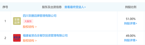 其中,福建省贤合庄餐饮投资管理有限公司持股49%,四川至膳品牌管理有限公司持股51%。在贤合庄微信公众号的公开信息中,也将与至膳集团“强强联手”作为品牌优势之一。