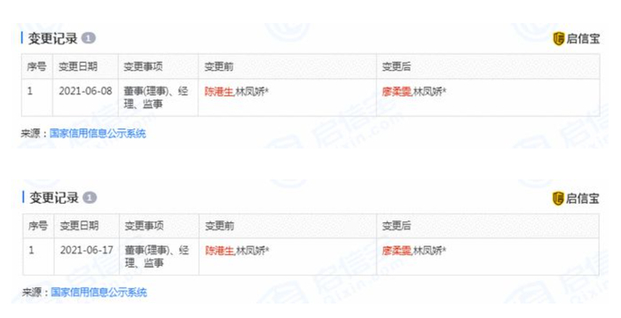 网上信息显示,这两家公司都注册于2007年2月8日,法定代表人均为林凤娇,且由其全资持股。此前,成龙在这两家公司内均担任监事一职,不涉及股权分配。