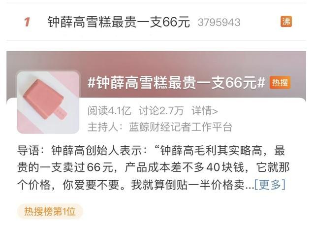 上周,钟薛高连续冲上微博热搜,从#钟薛高雪糕最贵一支66元#到#钟薛高是智商税还是物有所值#,再到#钟薛高特级红提实为散装红提#。