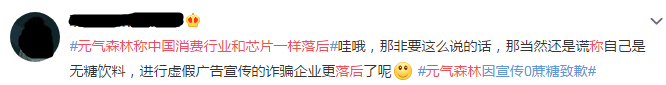 且不说中国消费的落后情况如何,但是唐彬森将其“落后”联系到“芯片”,还是引起了许多网友的不适。再加上,元気森林前段时间曝出的“忽悠式营销”丑闻,以“0糖、0脂肪”为卖点大肆宣传,误导消费者为智商税买单。
