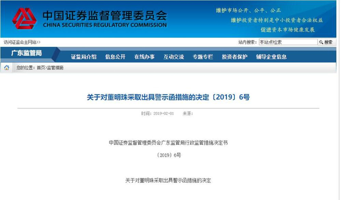 在较早前2019年1月16日的格力电器股东大会上,董明珠在董事会换届等事宜进行投票表决前,特地晒出了一连串她在担任董事长期间的业绩情况,并毫不避嫌的在公司公告前透露了公司2018年营收、净利润等亮丽业绩信息,还表示未来几年将实现年均10%的营收增长。当然,董明珠的这一次的“口无遮拦”违反了信披规定。为此,董明珠收到了证监会的警示函。