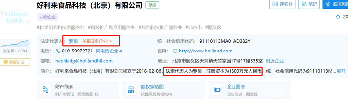 据天眼查APP显示,罗昊目前为好利来食品科技(北京)有限公司的法定代表人、执行董事及总经理,该公司注册资本1800万人民币,成立于2018年2月,经营范围包括餐饮管理;销售食品;仓储服务(不含危险化学品);装卸服务等。股东信息显示,该公司由罗昊和罗昱共同持股,持股比例为60%、40%。