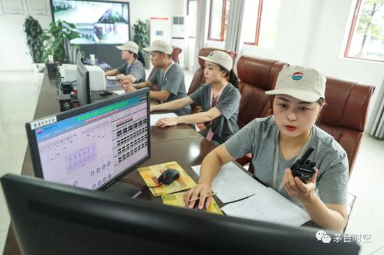 ▲勾兑生产中心程控室员工正在调度当天基酒进出。