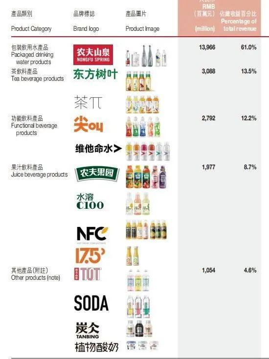 农夫山泉在饮料领域实行“多品牌”战略,布局了茶饮料(东方树叶、茶π)、功能饮料(尖叫、维他命水)、果汁饮料(农夫果园、水溶C100、NFC、17.5°)多个赛道。