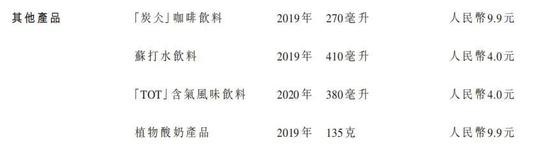 招股书显示,2019年,农夫山泉才进入苏打水饮料,410毫升的产品,建议终端零售价为4元。