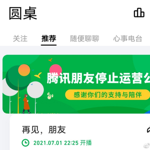 目前,腾讯朋友在其App内发布了一则公告,公告显示,由于业务发展策略调整,2021年6月30日关闭服务器,正式停止运营。