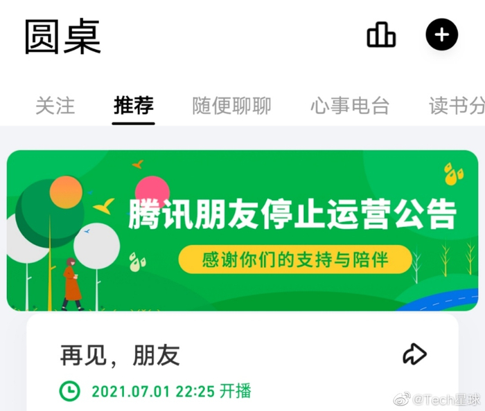 Tech星球获悉,复活一年多的腾讯朋友将再次关停。