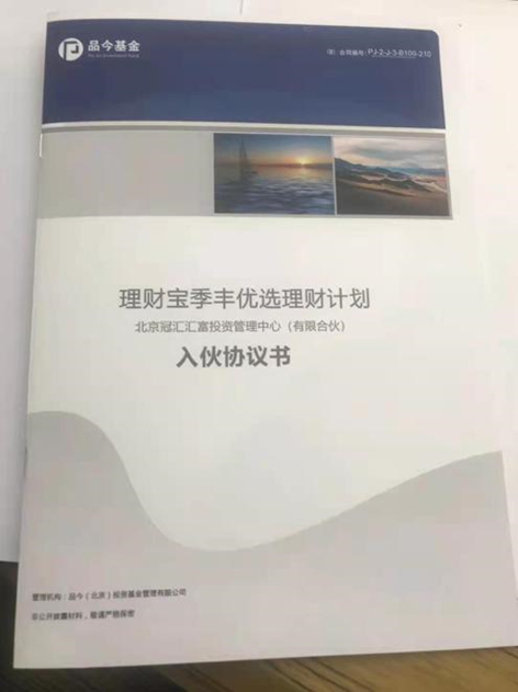 上述案件的起因是,去年3月20日,投资人孔女士与品今基金签署了《理财宝季丰精品优选理财计划(入伙协议书)》,约定孔女士出资150万元成为冠汇汇富的有限合伙人,投资期限3个月。