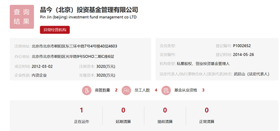 然而,品今控股旗下的三家私募基金公司在基金业务协会均显示为“异常经营机构”。此外,品今基金旗下的14个营业部已被注销,目前仅剩下品今基金。