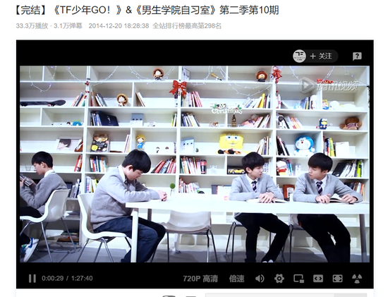 在练习生们的成长过程中,公司在对其进行训练的同时,会不断放出物料,对粉丝汇报。时代峰峻在B站认证的账号“TF家族”,在2014年发布第一支视频物料《男生学院自习室》开始,而截至发稿前,TF家族这个账号的投稿数量达到845个。