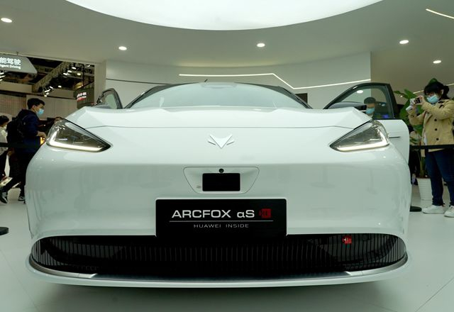 4月19日,华为Huawei ADS高阶自动驾驶系统展车在上海国际车展上亮相。新华社图