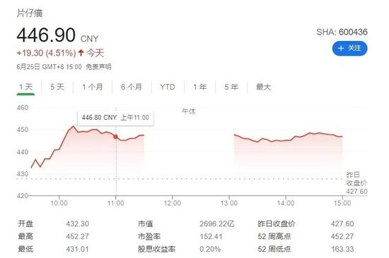 王富济的眼光没有被片仔癀或者说运气辜负。截至目前,片仔癀股价也从2009年最低值18元/股增长到了如今446元/股。