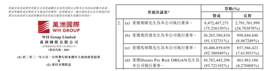 此时,距其成为万洲国际执行董事、董事会副主席仅三年时间。今年6月1日,万洪建还以91.13%投票率获连任。
