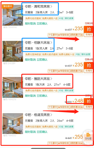 而其晒出的另一张截图则显示,所有房型的价格均在235至255元之间。