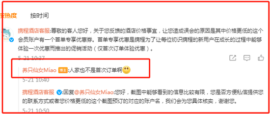 对于携程的回应,该用户说:人家也不是首次订单啊?